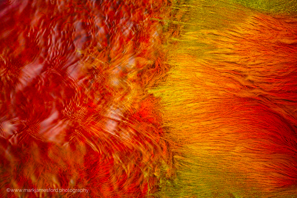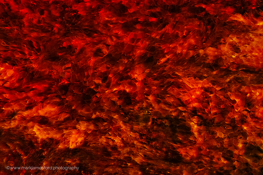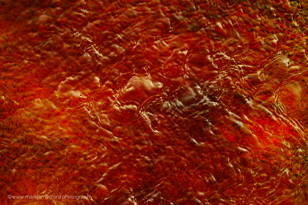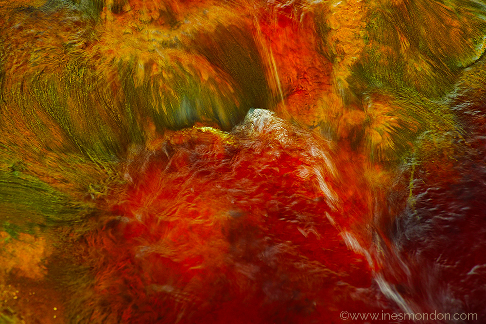 Of course, despite the overbearing temperatures wellies or equivalent are a must. While this is anything other than comfortable, the inability to wash the colour out of our clothing caused by inevitable small amounts of water splashes was ample warning that you did not want to get this on your skin. In general, there are many points on the the river which are ‘readily accessible’ without having to walk to far from the car (as long as the car can be driven along gravel tracks). However, on many occasions one needs to climb down a gravel slope which is often quite loose (simply uncompacted mine waste) and on occasion sharp, so that here too solid footwear is also a must. In the end however, we were amply rewarded for our efforts. Although we approach the subject in different ways, water is for us both an ever changing source of colour and detail and is thus very much a preferred motif.